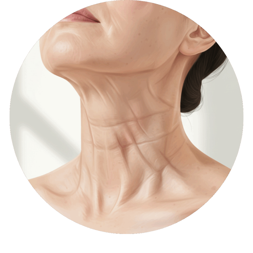 首元のシワやフェイスラインのたるみは、年齢とともに気になりやすい部分。
