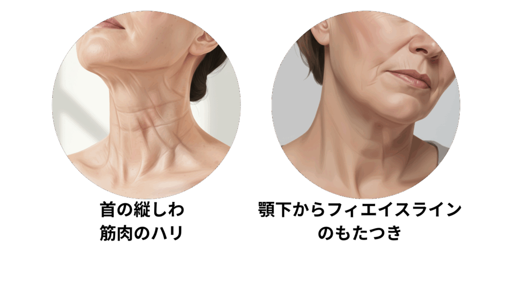 また、広頚筋は下あごの動きにも関係しており、過剰に発達するとフェイスラインがもたつきやすくなる要因にもなります。