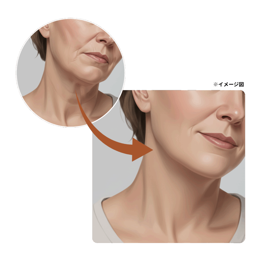 首元のシワやフェイスラインのたるみは、年齢とともに気になりやすい部分。
