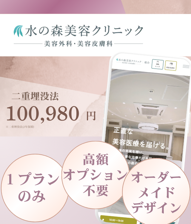 ![]() 水の森美容 クリニック | ・二重埋没法 ・二重切開法 | ・自信のあるプランに絞ったシンプルなメニュー設計 ・解剖学を熟知した医師による自然仕上がりの二重整形 |