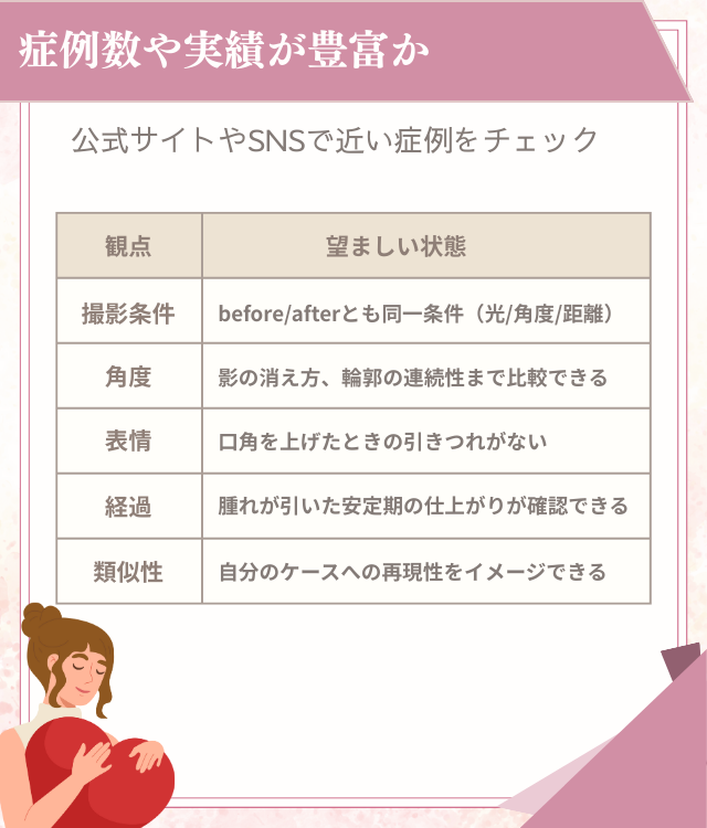 | 類似性 | 年齢/骨格/悩みが自分に近いか | 自分のケースへの再現性をイメージできる |