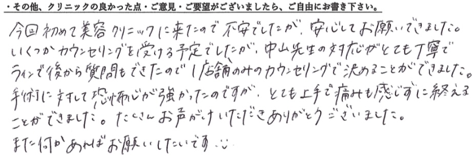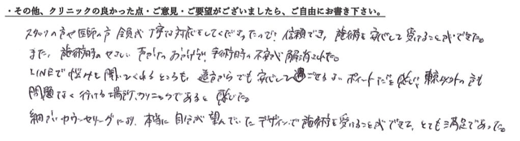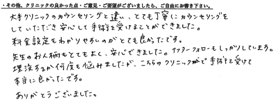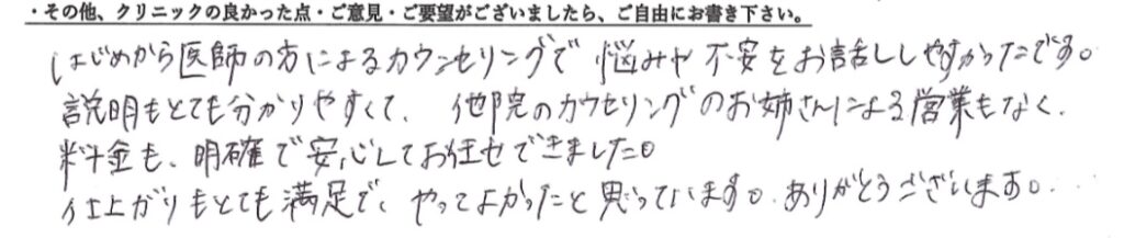 受けた方の有難いお言葉です