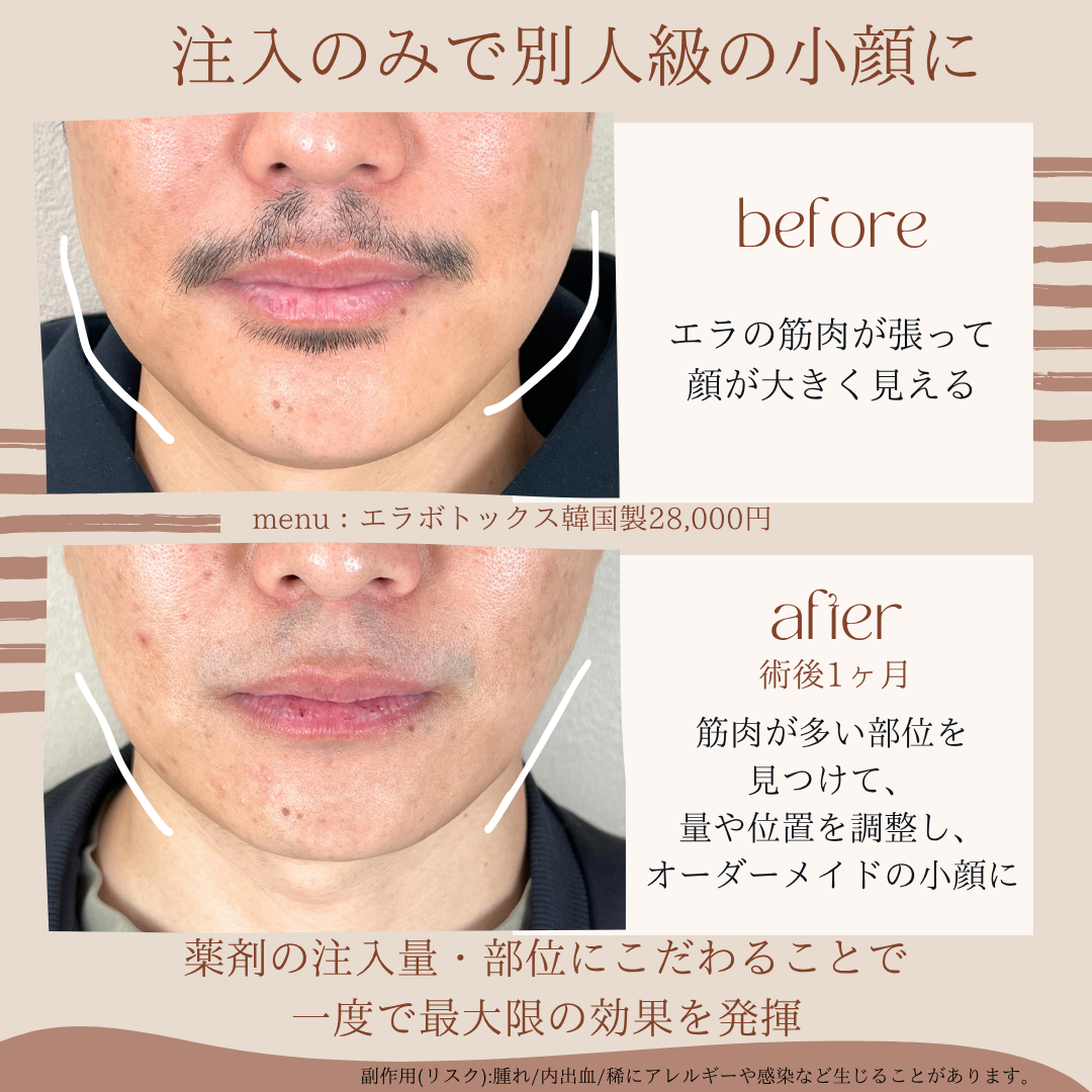 エラボトックス韓国製 施術メニュー 中山医師 2025 11/12 ボトックス 医師中山樹 メニュー名エラボトックス韓国製 症例解説 料金28,000円(税込) 合併症・リスク内出血、腫れ、脱力感等 この施術の詳細ページはこちら 中山医師のすべての症例をみる ボトックス メニュー 閉じる 目次 閉じる
